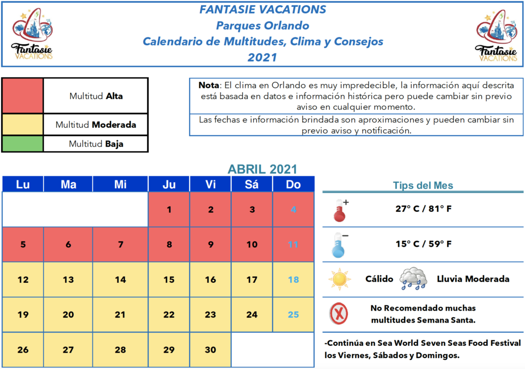 Calendario y Tips Orlando